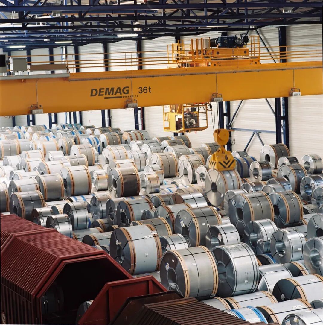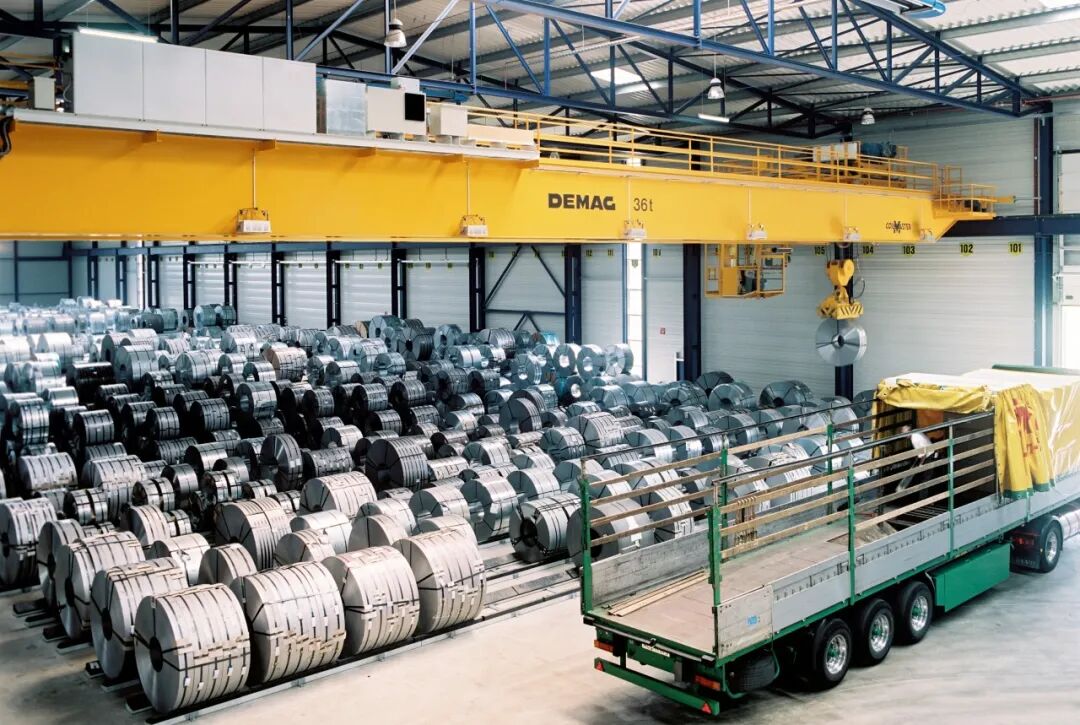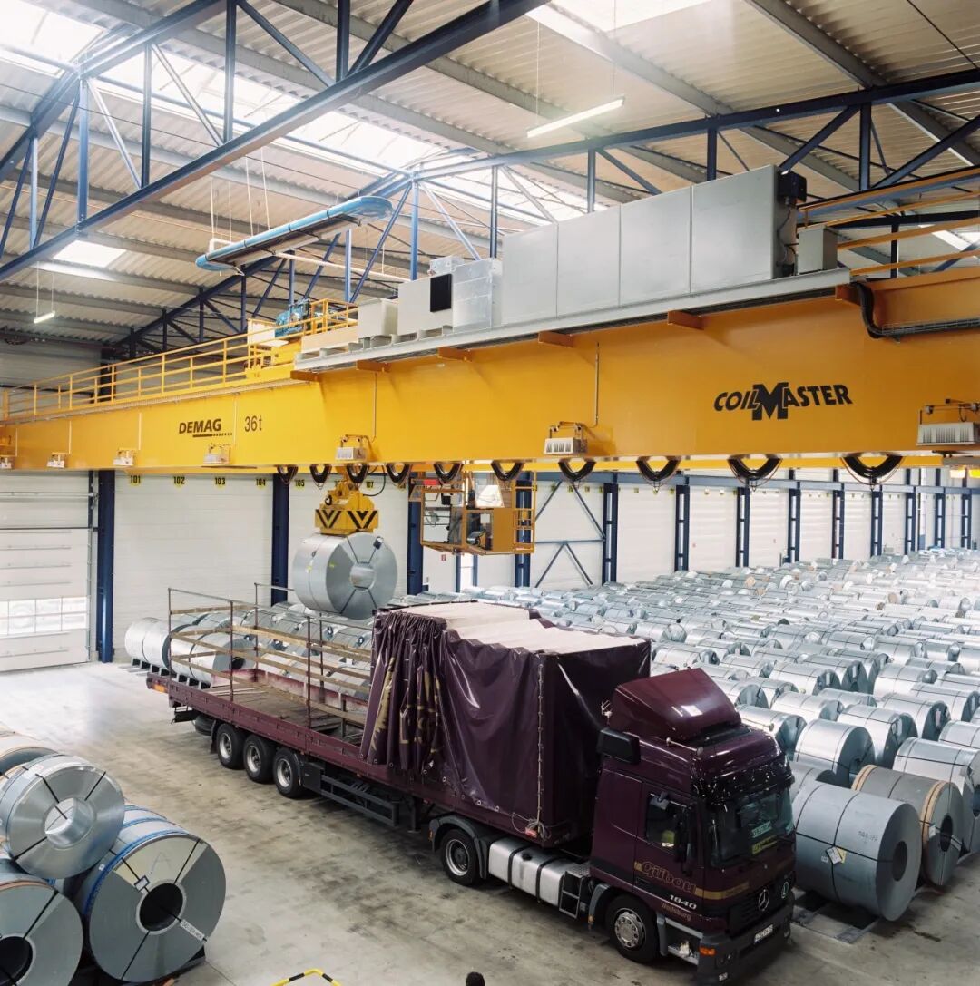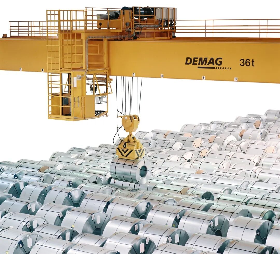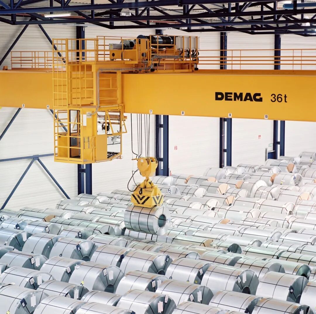 为提高钢卷存储与搬运作业效率,德马格起重机可提供多种配备电磁吸盘的钢卷搬运起重机以满足用户的特定需求。这些起重机可选择性地通过无线遥控器或驾驶舱操控,也可以全自动控制。