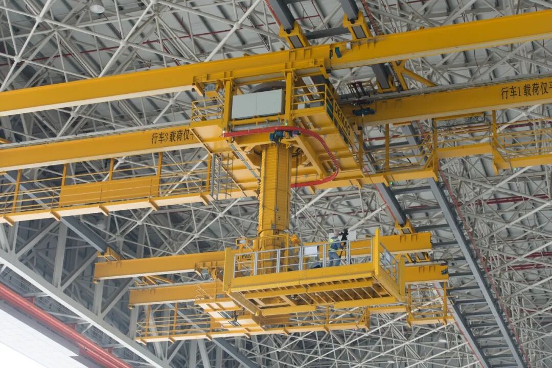 升降平台系统由悬挂式起重机、升降平台和主要用于提升和搬运喷气发动机的服务小车组成。通过互锁连接各个悬挂式起重机,一个或多个服务小车可以从一个起重机桥架行进到邻近的另一个起重机桥架。在这种方式中,工作平台或者服务小车的作业半径扩展至覆盖整个机库。