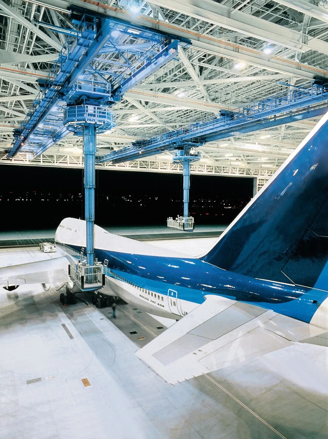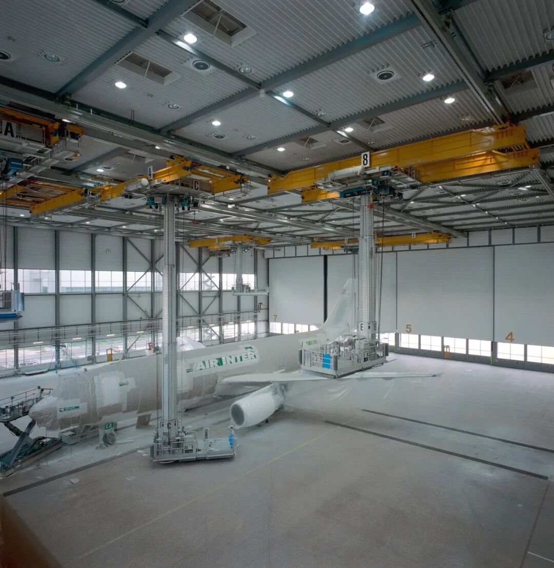 如今,为了适用于多种类型和尺寸的飞机,需要更为复杂的维护和喷漆设施。不同种类飞机所使用的地面维护平台占据了飞机周围的大量地面空间。在现代化的维护和喷漆机库中,一种升降式工作平台和悬挂式起重机的组合带来空间利用更有效的解决方案。在航空工业中,这种组合式起重设备正越来越多地用于大修、维护和喷漆工作。